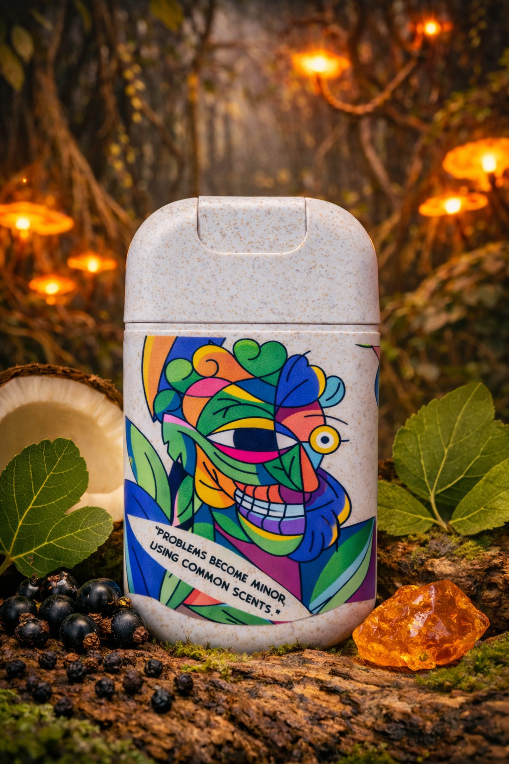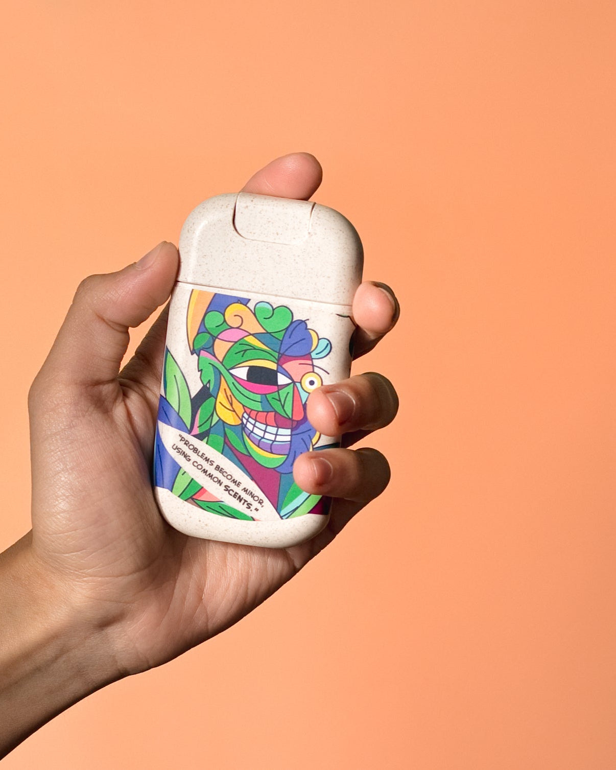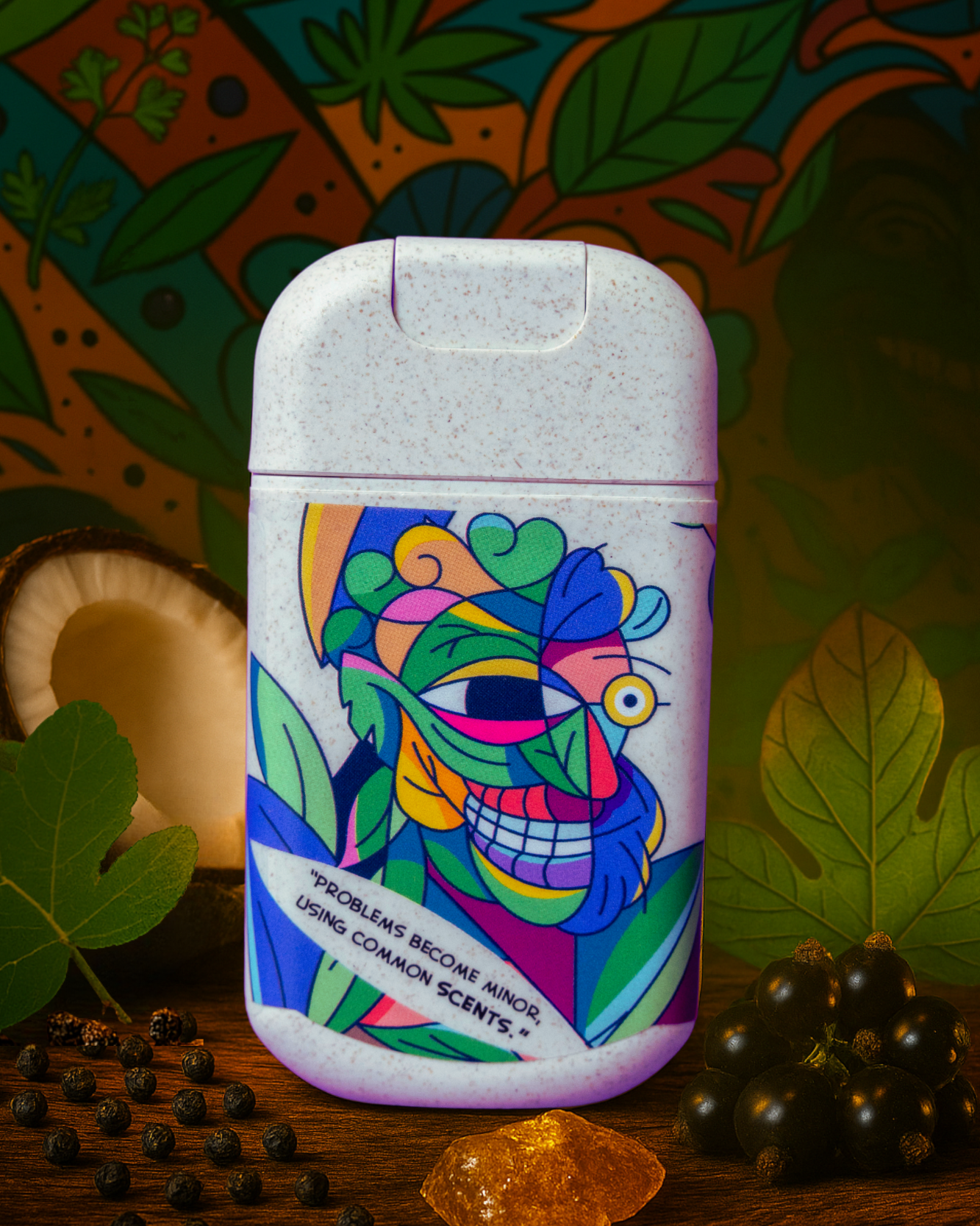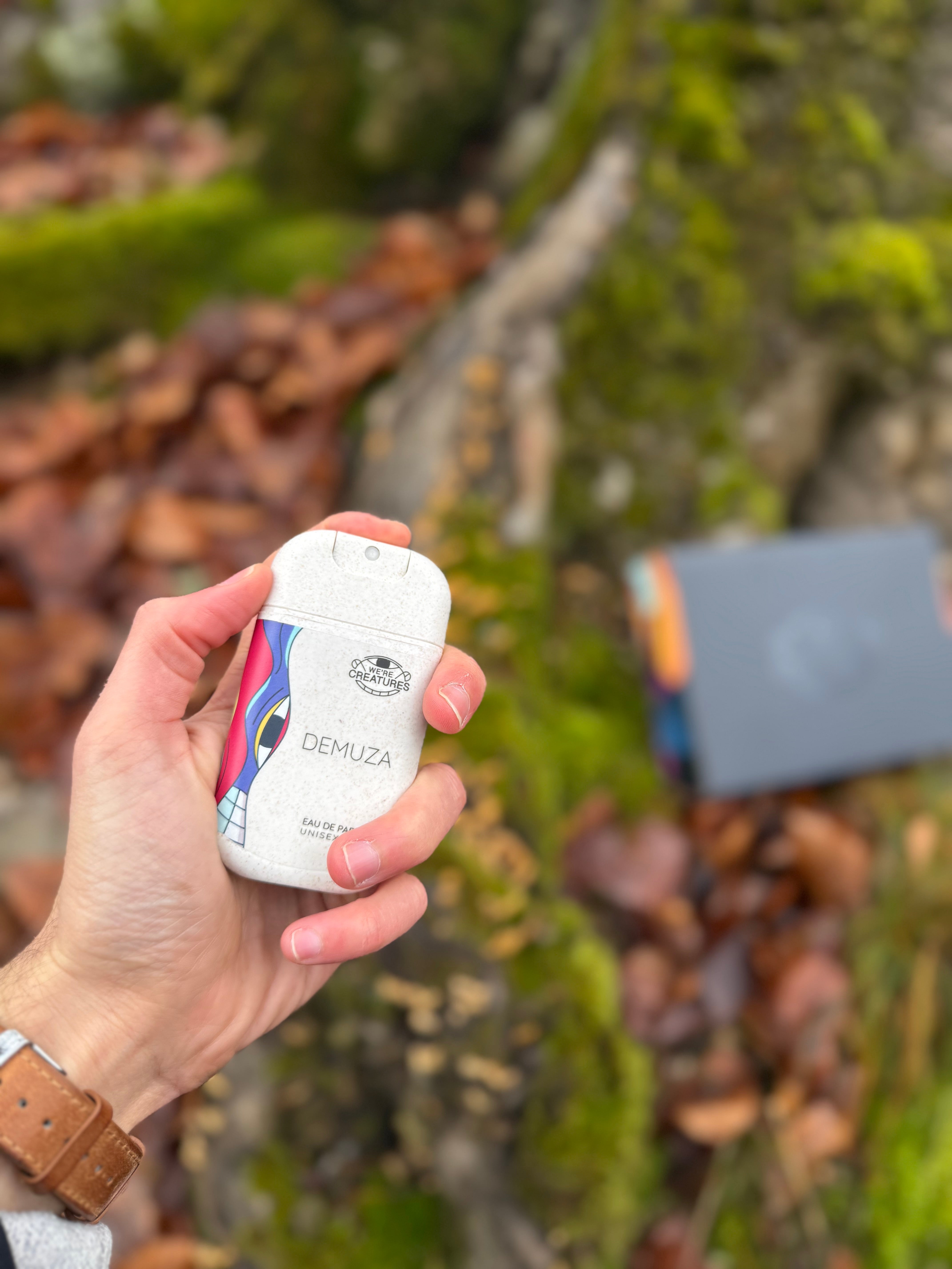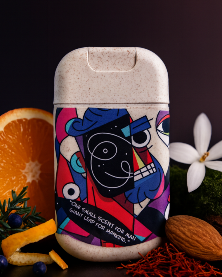 שלישיית בשמי כיס יוניסקס, בהשראת שלוש דמויות מאוירות: LEAF, DEMUZA ו-SPACE-FACE.
